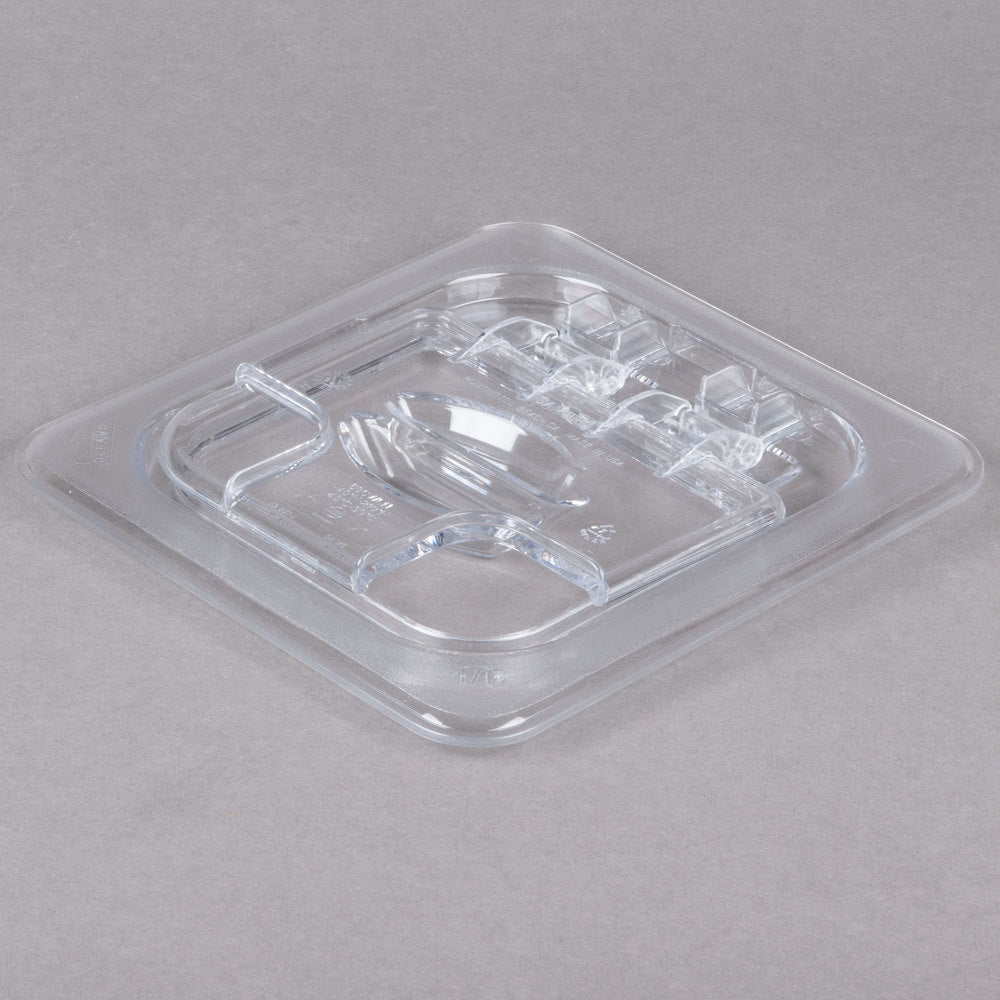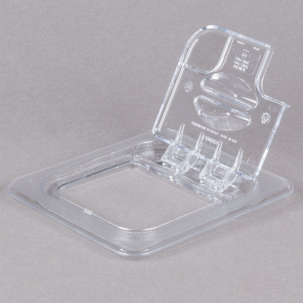 Cambro Camwear 1/6 Size Clear Polycarbonate FlipLid with Spoon Notch