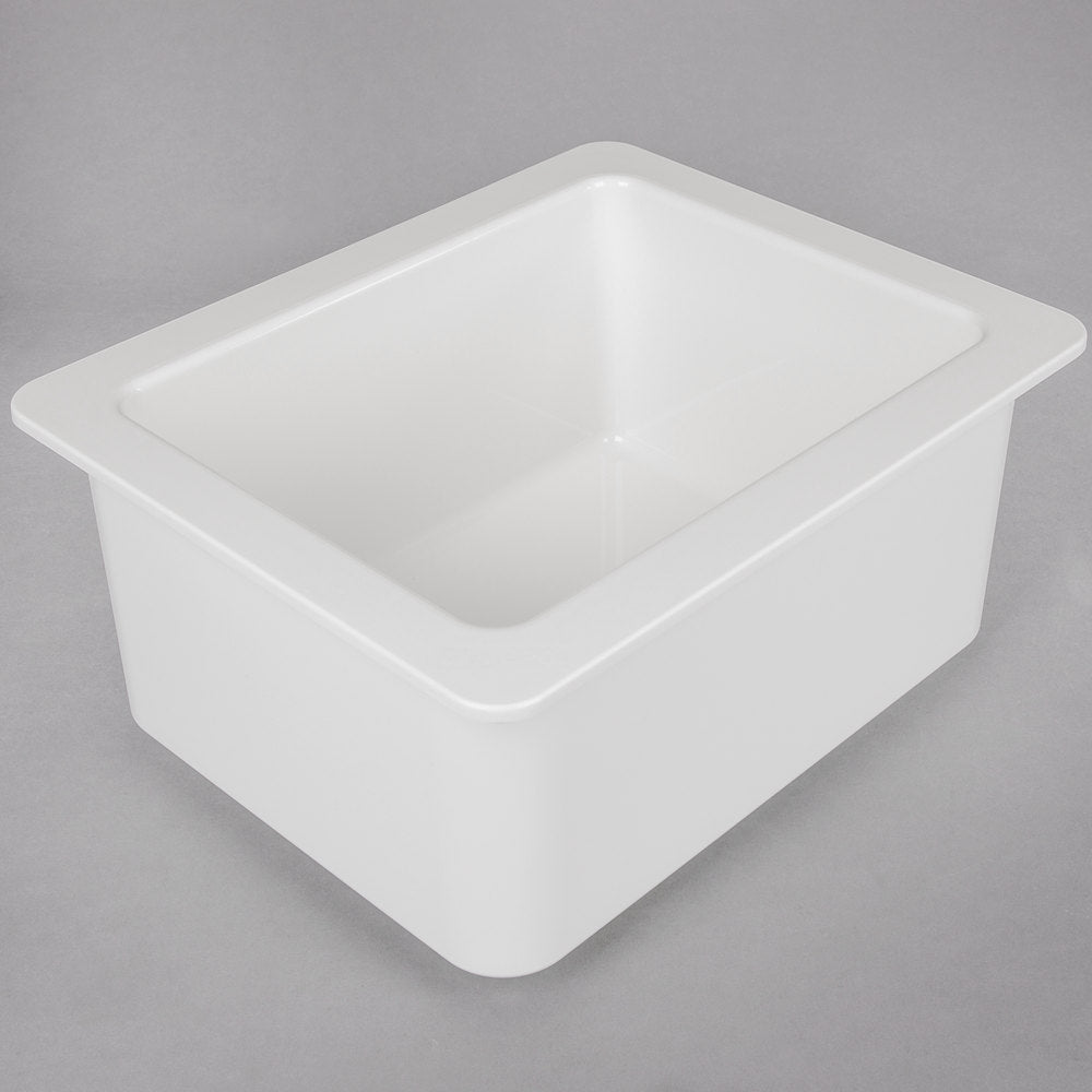 This white Cambro 26CF148 1/2 size 6" deep ColdFest ABS plastic pan keeps contents chilled at or below HACCP guidelines at 41 degrees Fahrenheit, without the use of ice. Designed