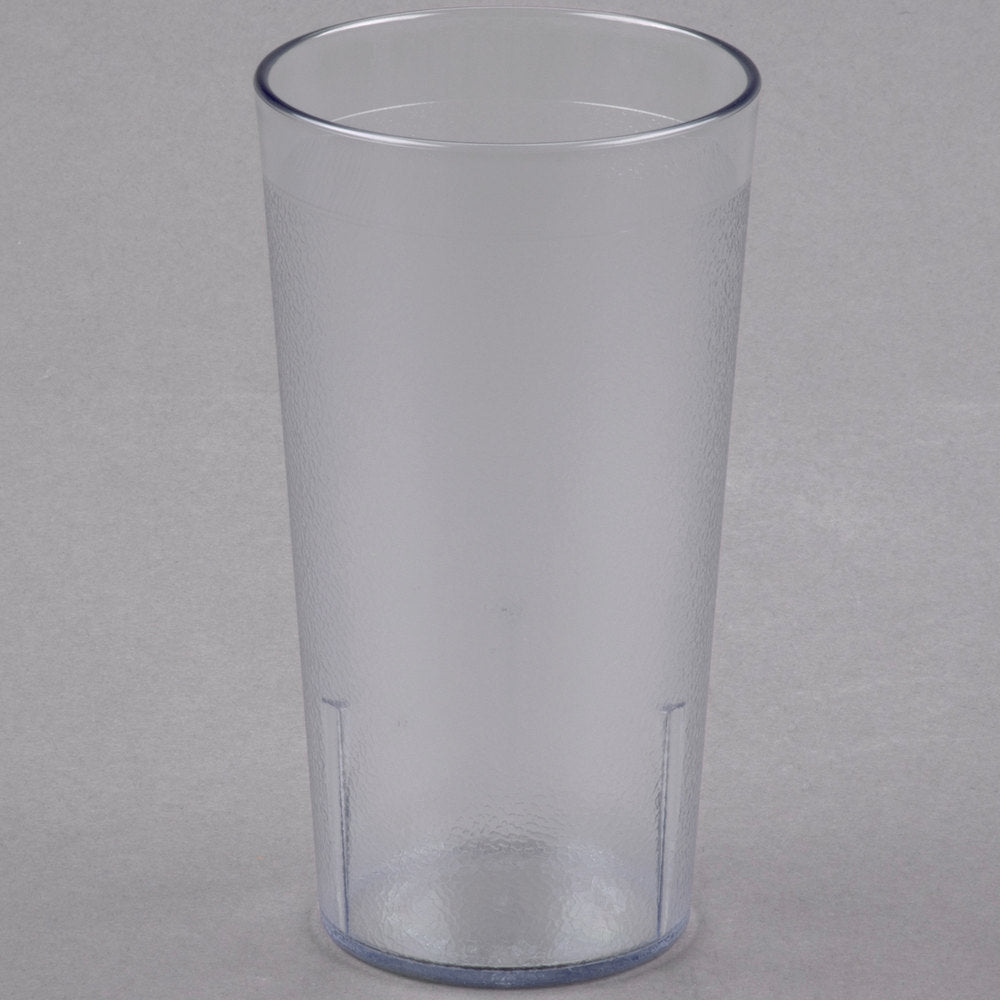 - Provide durable and efficient plastic beverageware at your family restaurant, pizzeria, diner, cafeteria, child care center, or healthcare facility with this Cambro 1600P2152 Colorware 16.4 oz. clear customizable SAN plastic tumbler. Made of break and chip-resistant SAN plastic, this tumbler can handle daily use at high volume venues. Its textured exterior guards it against visible water marks and scratches, ensuring it maintains its immaculate appearance for years to come! This pebbled design also offers users a secure grip for steady sipping and minimized spills. Meanwhile, the smooth interior provides easy cleaning and the Sani-Rim lip presents a sanitary drinking surface with each use. Interior stacking lugs enable this tumbler to be stacked in your kitchen or near beverage dispensers for compact storage and easy access. Furthermore, these lugs provide sufficient space between each stacked tumbler, promoting even air flow and fast drying.