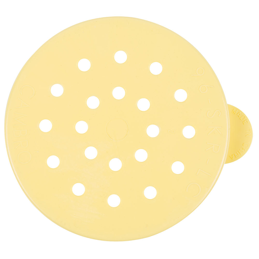 Ensure easy and efficient seasoning at your self-service stations with this Cambro 96SKRLC405 yellow shaker lid for cheese! This lid is specifically designed to dispense parmesan cheese with ease. Its