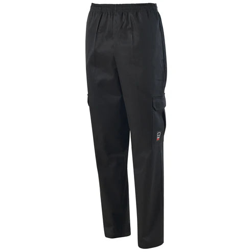 - Keep your kitchen staff cool with the UNF-11KL unisex chef pants with cargo pockets - part of the Signature Chef clothing collection by Winco. These pull-on style pants feature a drawstring secure fastening. The lightweight 65/35 poly-cotton blend ensures maximum breathability ideal for chefs and line cooks in hot hotel and restaurant kitchens. The black pants offer ample storage with dual cargo pockets, dual on-seam pockets and dual rear pockets. The traditional styling of these pants adds an upscale flare that elevates any dining experience. Machine washable.