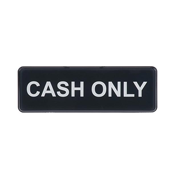 Cash Only Sign - Black and White, 9" x 3" / Tablecraft