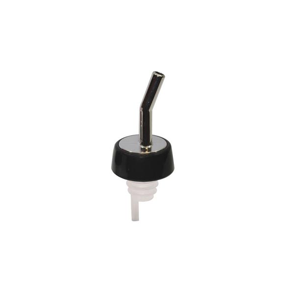 Serve mixed drinks quickly and efficiently with this Chrome Plastic Liquor Pourer with Black Collar from Tablecraft. This pourer has an extra-long curved spout to help you pour more precisely, eliminating spillage and cutting costs. It also highlights a collar that reduces dripping and helps the pourer remain firmly attached to the liquor bottle of your choice. This pourer is easily installed into liquor bottles. This simple, functional pourer is sure to be a great fit at any bar or restaurant.