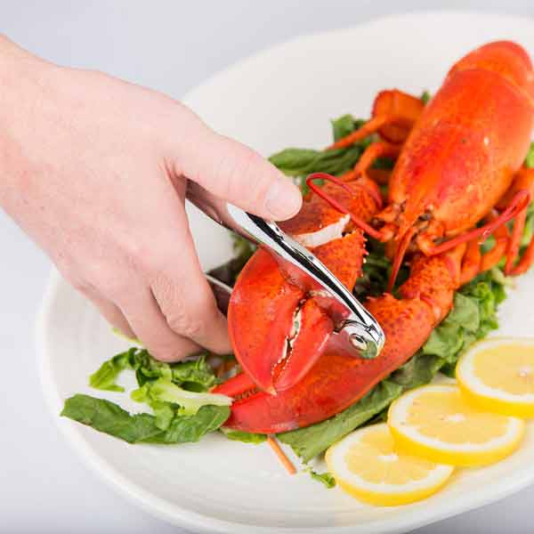 A must-have addition to any catered event, buffet, or seafood restaurant, this Chrome Plated Zinc 5-1/2 Inch Claw Shaped Lobster / Shellfish Cracker from Tablecraft will simplify tedious dining tasks. This heavy-duty double-jaw cracker enables you to clamp down and crack open lobster claws, crab legs, or crab shells with one easy motion.