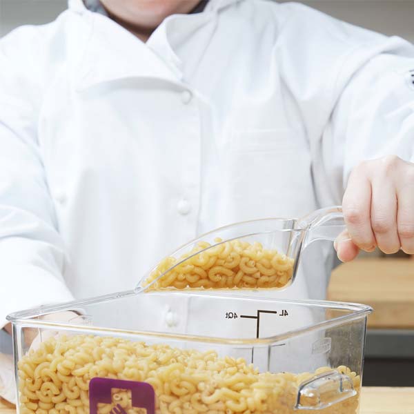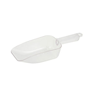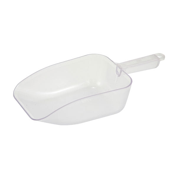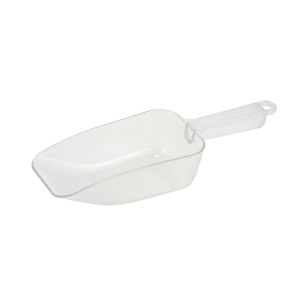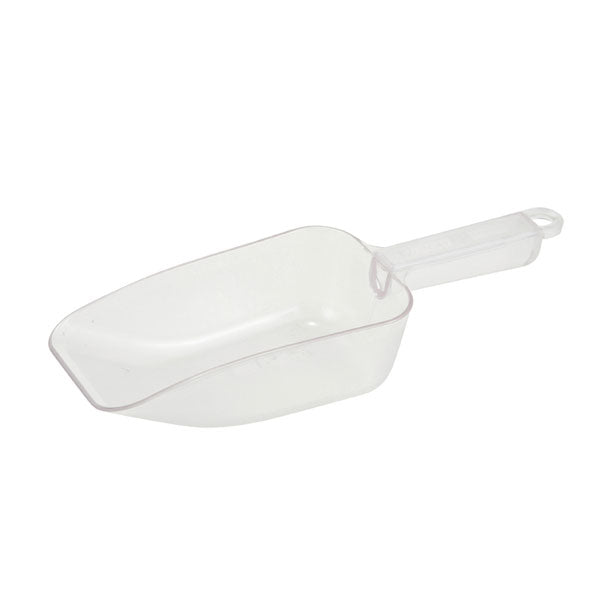 Excellent for scooping ice, flour, or popcorn, the Clear . Polycarbonate Scoop from Winco is a great addition to any restaurant, bakery, or concession stand. This utility scoop highlights a flat bottom with a straight front edge for efficient portioning and to easily access the bottom and corners of a container. With its easy-grip handle, this scoop gives a firm hold while guaranteeing touch-free service. Crafted from polycarbonate, this NSF-approved scoop is shatter-resistant, easy to clean, and exceptionally long-lasting.
