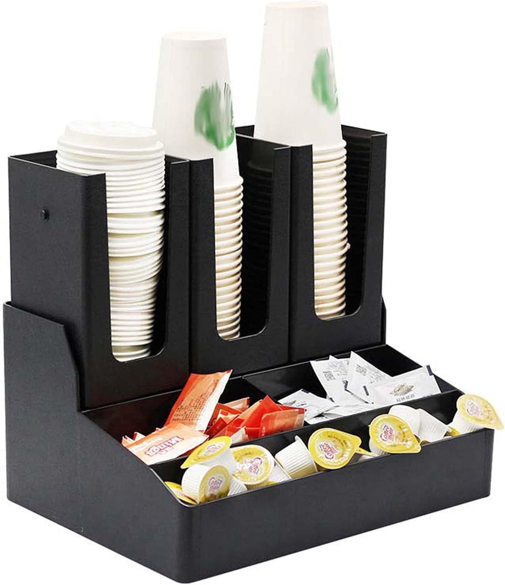 Countertop Cup, Lid, and Coffee Condiment Organizer Black 6-Section