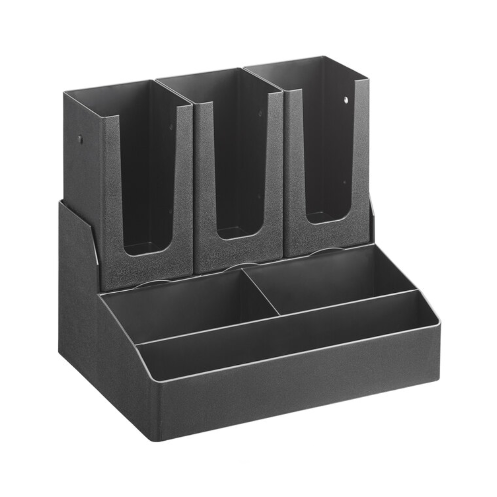 This 6-compartment organizer houses lids, cups, and even coffee condiments and is an ideal choice for providing quick organization and ultimate convenience for your customers.