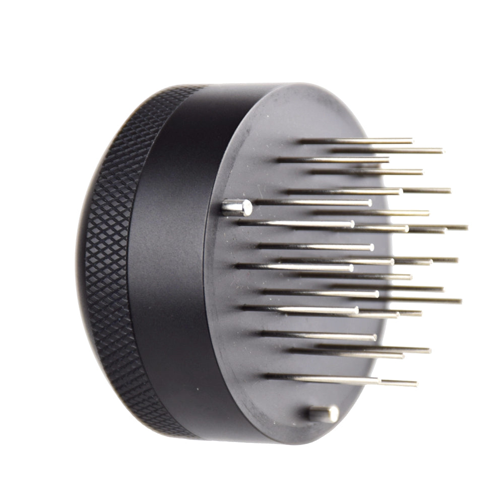 The tamper features fine needles made from high-quality stainless steel, allowing for precise distribution of coffee grounds in the portafilter. The black color adds a stylish touch to the tamper's appearance. The use of 304 stainless steel ensures durability and resistance to corrosion.