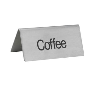 "Coffee" Table Tent Sign Stainless Steel - 3" x 1 1/2" / Winco