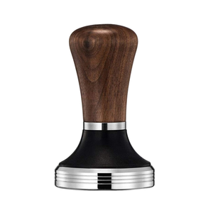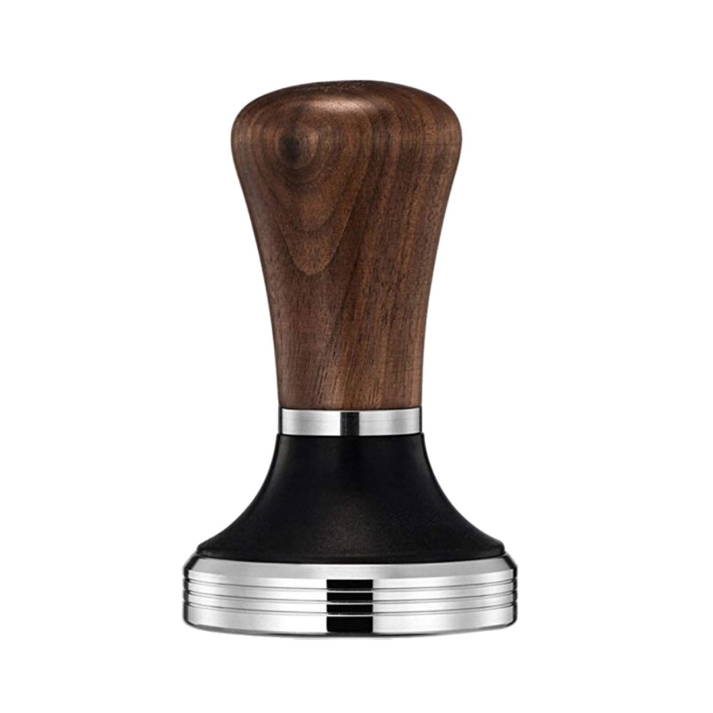 The tamper's base is designed to fit most espresso machines and has a flat bottom that ensures even and consistent tamping. The wood handle is ergonomically shaped to fit comfortably in your hand, allowing you to apply the right amount of pressure without straining your hand or wrist.