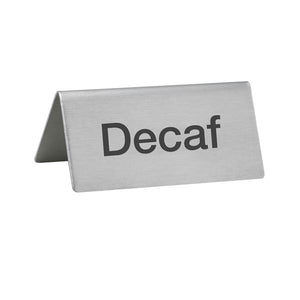 "Decaf" Table Tent Sign Stainless Steel - 3" x 1 1/2" / Winco