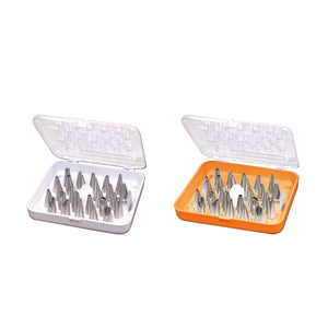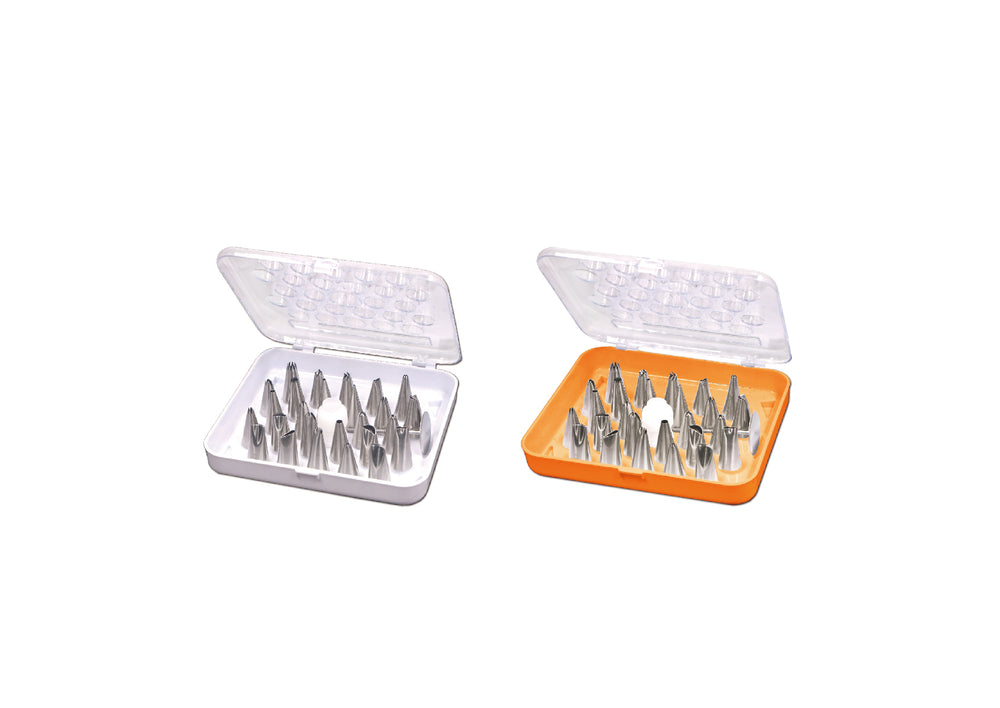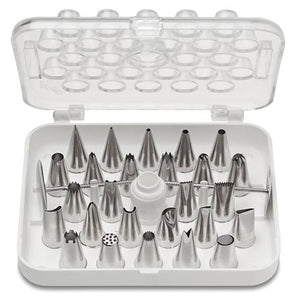 - Maximize your pastry decorating skills with this Wilton 29-piece stainless steel piping tip decorating set! These tips are made from durable stainless steel, ensuring long-lasting use in your bakery. For a convenient method of storage, this set comes with a plastic case where your decorating tips will fit neatly and snug. Plus, changing out tips is made easy with the standard coupler included in the set.
