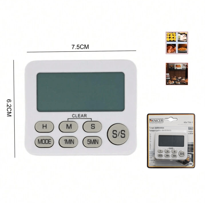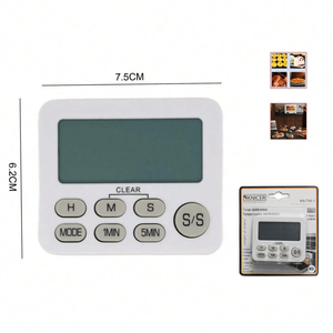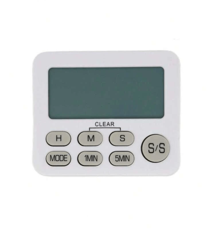 This digital timer features a power button for simple and efficient use. Although it doesn't include batteries, its ABS construction ensures durability and resistance to daily use. Its magnet-free design makes it versatile, allowing it to be placed on any flat surface for quick and convenient access.