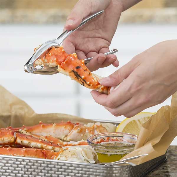 The hinged, double-jaw design and rough interior teeth allow you to clamp down on shellfish of various sizes and easily crack the shell without ripping apart the meat, guaranteeing you can enjoy your meal to the fullest. Whether it’s crab legs, lobster shells, or even nuts, this classic steel cracker is a useful tool for a variety of entrees. Constructed to last, this lobster cracker is made of heavy-duty steel and zinc-plated for corrosion resistance. Its ergonomic design and smooth handles give a simple, comfortable grip so your staff and guests can use the cracker with ease.