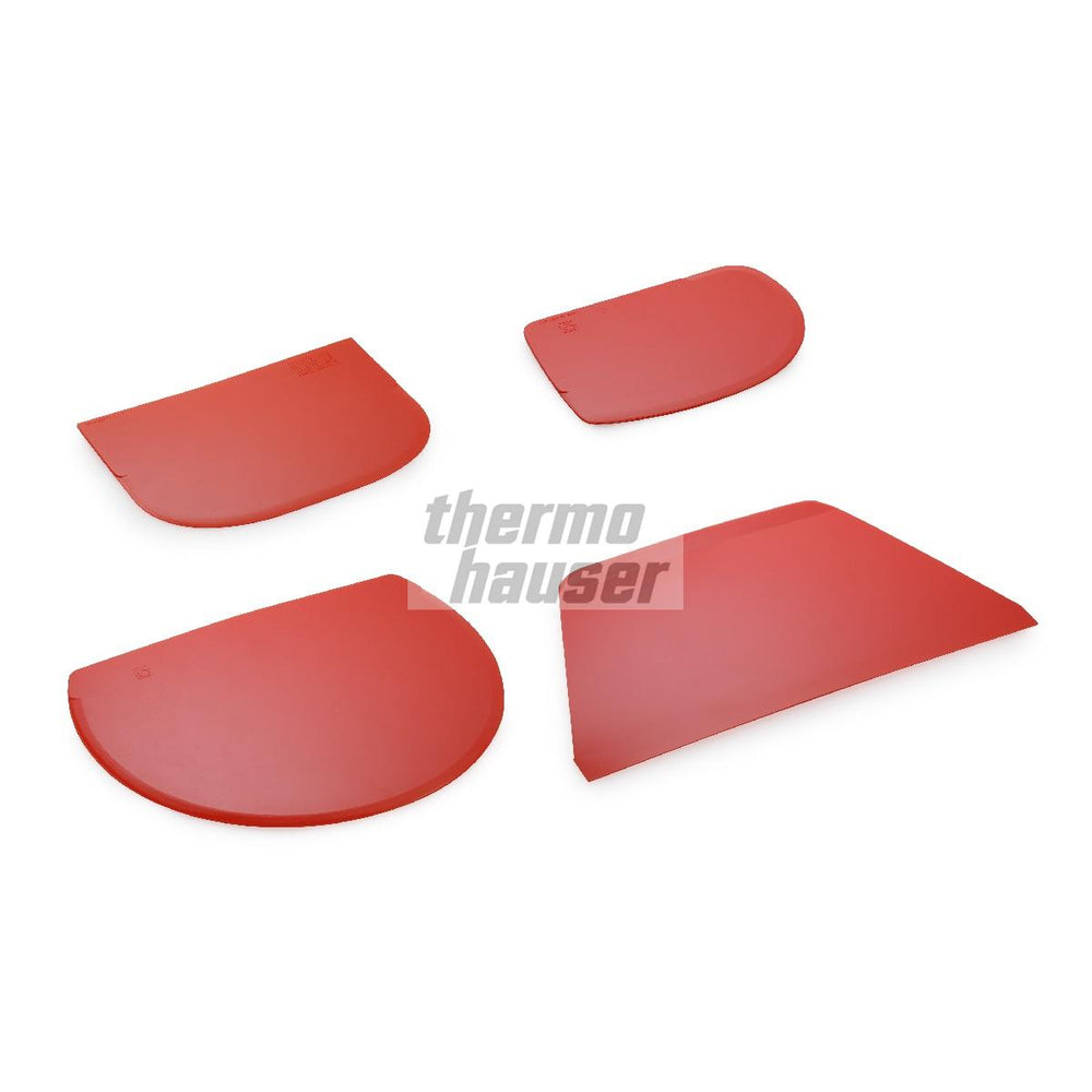 The dough scrapers are made of food-safe plastic (PP) in a bright red - making work twice as fun!