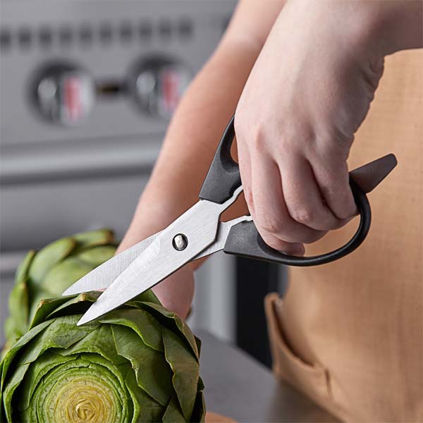These kitchen shears emphasize a patented ergonomic FirmGrip design for added support and safety. The soft-grip handle helps decrease hand strain during long use. Kitchen shears are the perfect addition to your prep kitchen to help with a variety of tasks. These shears are corrosion-resistant for long-lasting use.