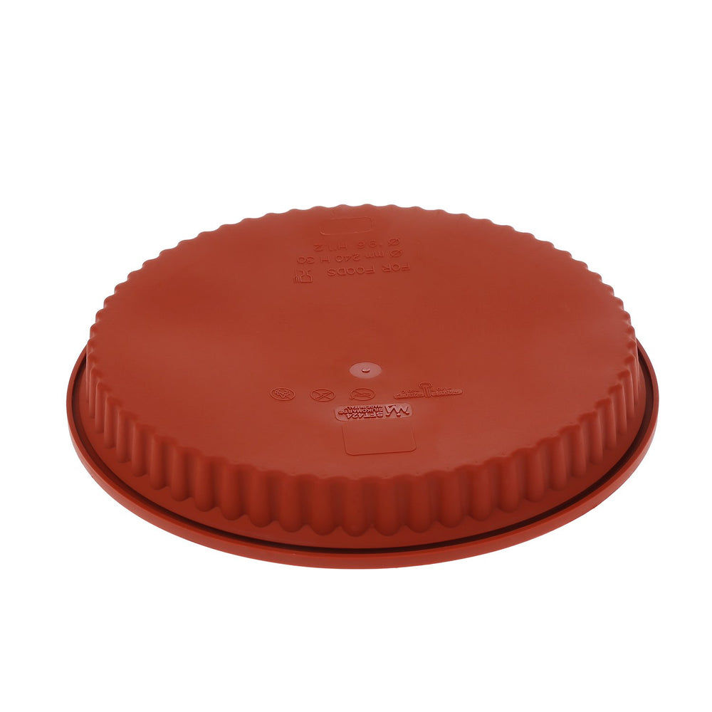This fluted tart or quiche pan made of silicone is a baking mold with a wavy, fluted edge, designed for creating tarts and quiches with a decorative, scalloped crust. These pans are typically made of flexible, non-stick silicone, making them easy to release baked goods without sticking. They are also often heat-resistant, suitable for use in ovens, microwaves, and freezers, and dishwasher safe.