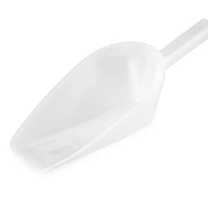 Our product range includes various sizes of these milky-white, plastic food scoops. The scoops are free-standing and do not tip over. Needless to say, they are approved for use with food products.