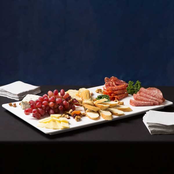 Let your hors d’oeuvres, sides, or even main entrees stand out on a stunning backdrop of stainless steel with this Rectangular Melamine Tray. Perfect for table service, buffet-style restaurants, or catered events, this gorgeous melamine serving tray provides countless presentation possibilities.