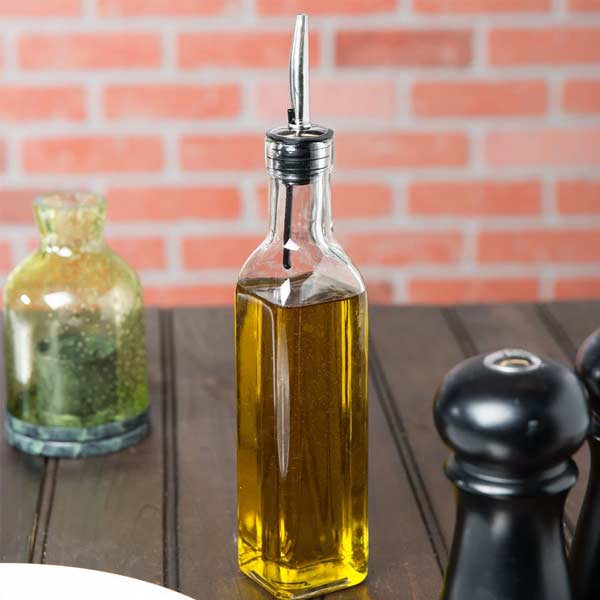 Whether on the go at your catered event or on the table of your bar, restaurant, or buffet, this Vinegar cruet is the ideal, versatile addition to serve anything from oil and vinegar to simple syrups. This set with pourer provides an easy way for your staff or customers to decorate salads or drizzle oil on soups or fresh bread.