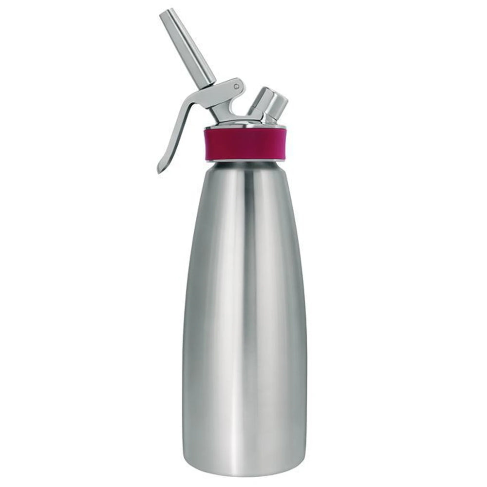 The all-purpose tool for the Professional kitchen. For the preparation of light and fluffy Espumas, finger food, warm and cold sauces and whipped soups, as well as whipped cream and desserts. For cold and hot preparations. Stainless steel bottle and head -designed for professional use. Head with protective silicone grip and fixed stainless steel valve for easy dispensing, even with hot preparations. Heat-resistant silicone gasket with removal tab for quick and hygienic cleaning. Keep warm in bain-marie up to 75°C/165°F . Includes: stainless steel straight tip, tulip tip, straight tip with teeth, cleaning brush, ergonomic charger holder with non-slip silicone grip, and heat resistant silicone grip at neck. Dishwasher-safe, NSF-certified, 2 year warranty 1.0 Quart capacity. Uses 2 iSi cream chargers.