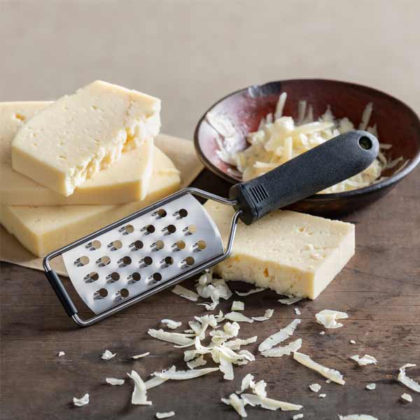 This Grater With Large Holes from Winco is capable of grating firm cheeses as well as a variety of other items. Use it to grate cinnamon sticks, chocolate, ginger, garlic,