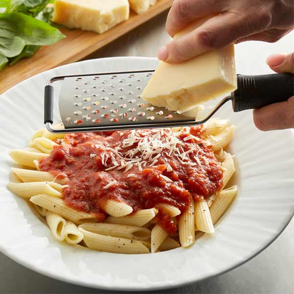 This Grater With Medium Holes from Winco is capable of grating firm cheeses as well as a variety of other items. Use it to grate cinnamon sticks, chocolate, ginger, garlic,
