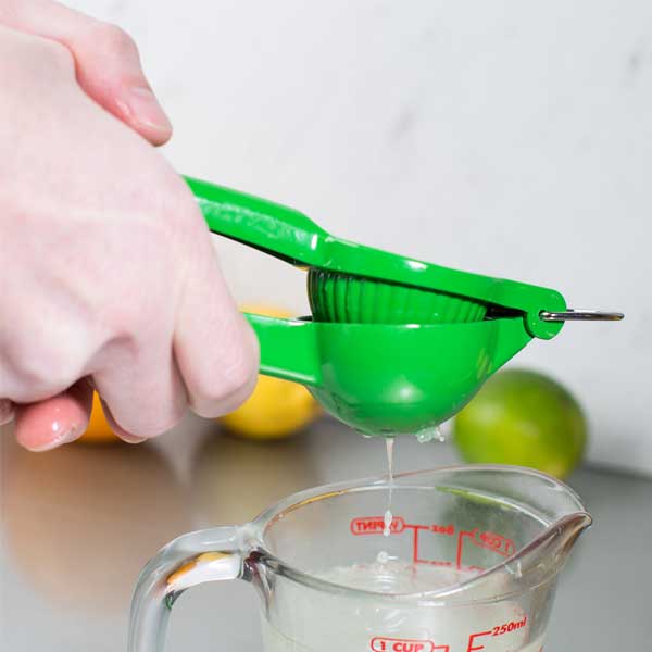 Use this Green Handheld Lime Squeezer, 8″ to swiftly and easily extract fresh citrus juice without the pulp, seed, or peel. Just place half of a lime in the squeezer