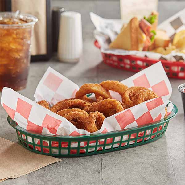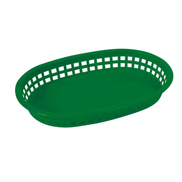 Ideal for any casual dining establishment, this Green Oval Plastic Fast Food Basket is a unique alternative to traditional plates. From sports bars and family-style restaurants to pool cabanas and another outdoor dining, it complements any inviting and fun atmosphere. Also, its lightweight design, transporting full meals is easier than ever. You can simply add deli sandwich wrap paper to the bottom of the basket to intensify your food presentation and catch any grease or crumbs before they make their way onto tables, counters, or floors.