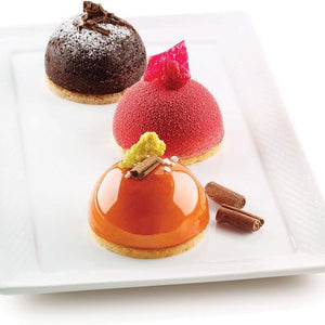 The silicone half-sphere mould is the perfect shape for your new individual recipe creations. The half-sphere allows you to create a variety of highly appreciated entremets. Indeed, with this shape you can layer, create a shell, make a mousse, etc.