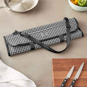 This Houndstooth 8 Pocket Knife Roll Set allows you to keep all of the tools you need in one place. It promotes greater organization and efficiency, so your professional appearance matches your cooking courage. Having quality knives can give you more confidence in the kitchen as well as efficiency. At Buyhoreca, we have varieties of kitchen knife sets that can turn you into the chopping machine. Pick your knife set today!