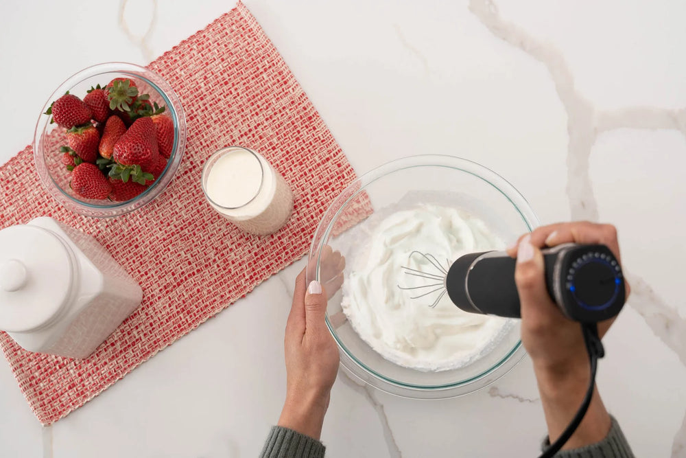 This premium hand blender features a 350 watt, adjustable speed motor making work in the kitchen a breeze. Sold in a bundle, this pack features 3 interchangeable parts allowing you