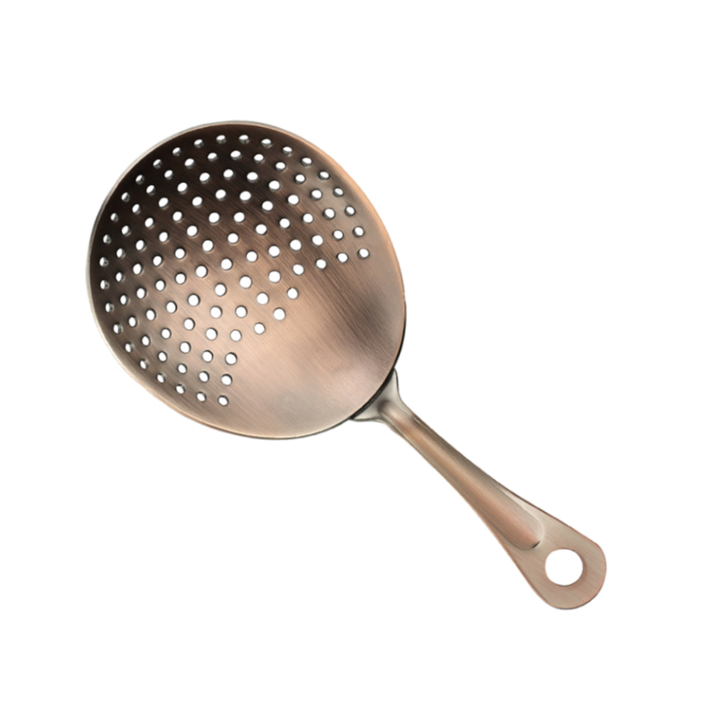 Designed for professional bartenders, our barware line delivers chic design, optimal mixing, precise measurement, and smooth pours for crafting and serving your inspired creations with style. After 5™ heavy-duty Julep strainers are designed for optimal straining performance, combined with stylish design – pros know clarity matters.Ideal for catching pulp with fast, easy cleaning.18/8 stainless steel maintains shape and resists corrosion.Precision holes for optimal draining and straining.Fits standard mixing glasses and shakers