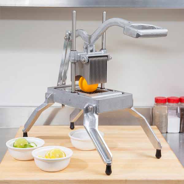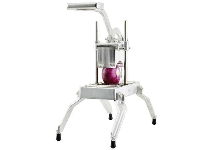 Use the Kattex Onion Slicer with 1/4″ Blade from Winco to slice onions evenly for sandwiches, salads, onion rings, and more. This onion slicer highlights an exclusive lever-handle for quick slicing and easy use. Built with a sturdy base and non-skid feet, this onion slicer will not slip during use. Built from aluminum, this onion slicer is rust and corrosion-resistant and durable enough for high volume commercial use.