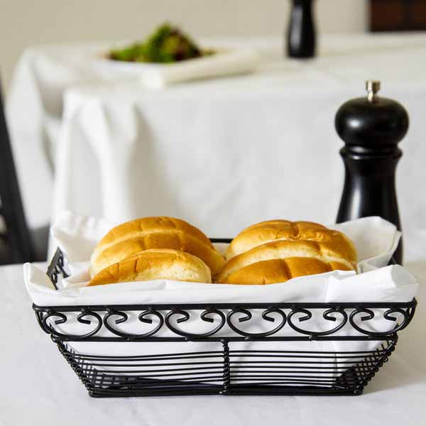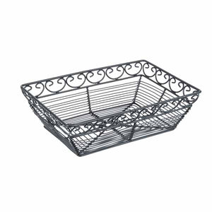 This Mediterranean Rectangular Black Metal Basket – 9″ x 6″ x 3″ / Tablecraft provides trendy versatility for almost any application. From the Mediterranean collection, this basket is powder coated for a durable finish. It highlights an attractive wire construction with a spiral design for an artistic look. It’s perfect for tabletop use in your restaurant or for placing on your buffet line.