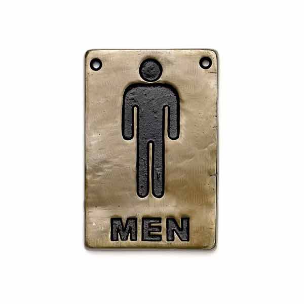 Built with a durable bronze plate, this sign includes great color contrast that is energetic enough to assist your patrons and simple enough to complement your restaurant or hotel’s interior. The etched black capitalized lettering allows your customers to see and read this sign from across a room or hallway and for those who may have trouble reading, a male symbol is posted at the top.