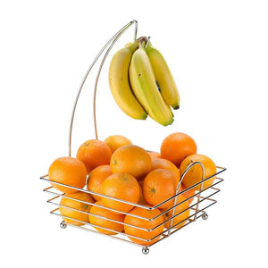 Meranda Chrome Plated Metal Square Fruit / Banana Combo Basket - 12" x 12" x 18" / Tablecraft