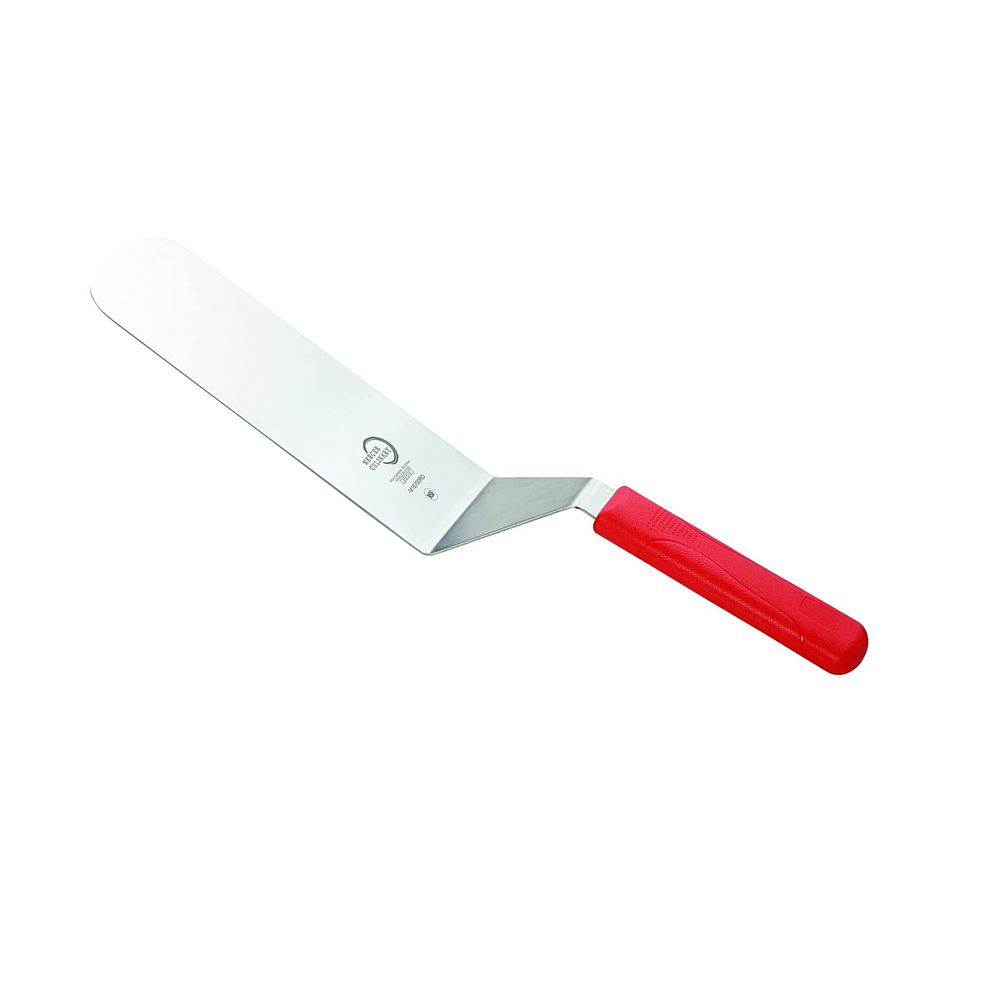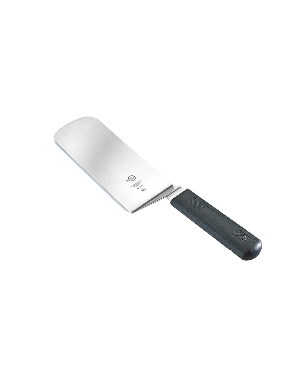 The Mercer Culinary Millennia 8" x 3" Turner is a kitchen tool that can be used for flipping and turning food items such as pancakes, eggs, and burgers. The turner blade is made of high-quality Japanese steel, which is known for its durability and resistance to rust and corrosion.
