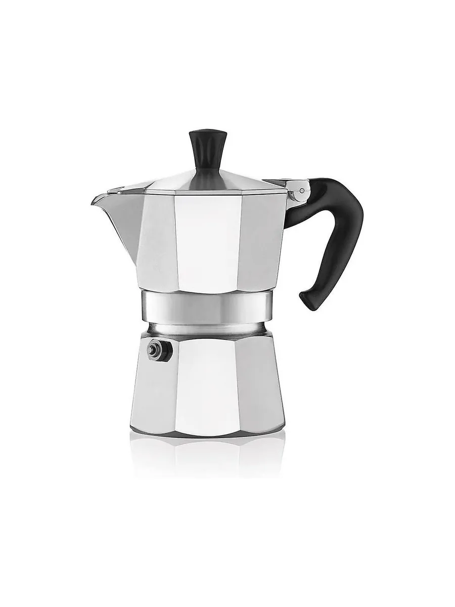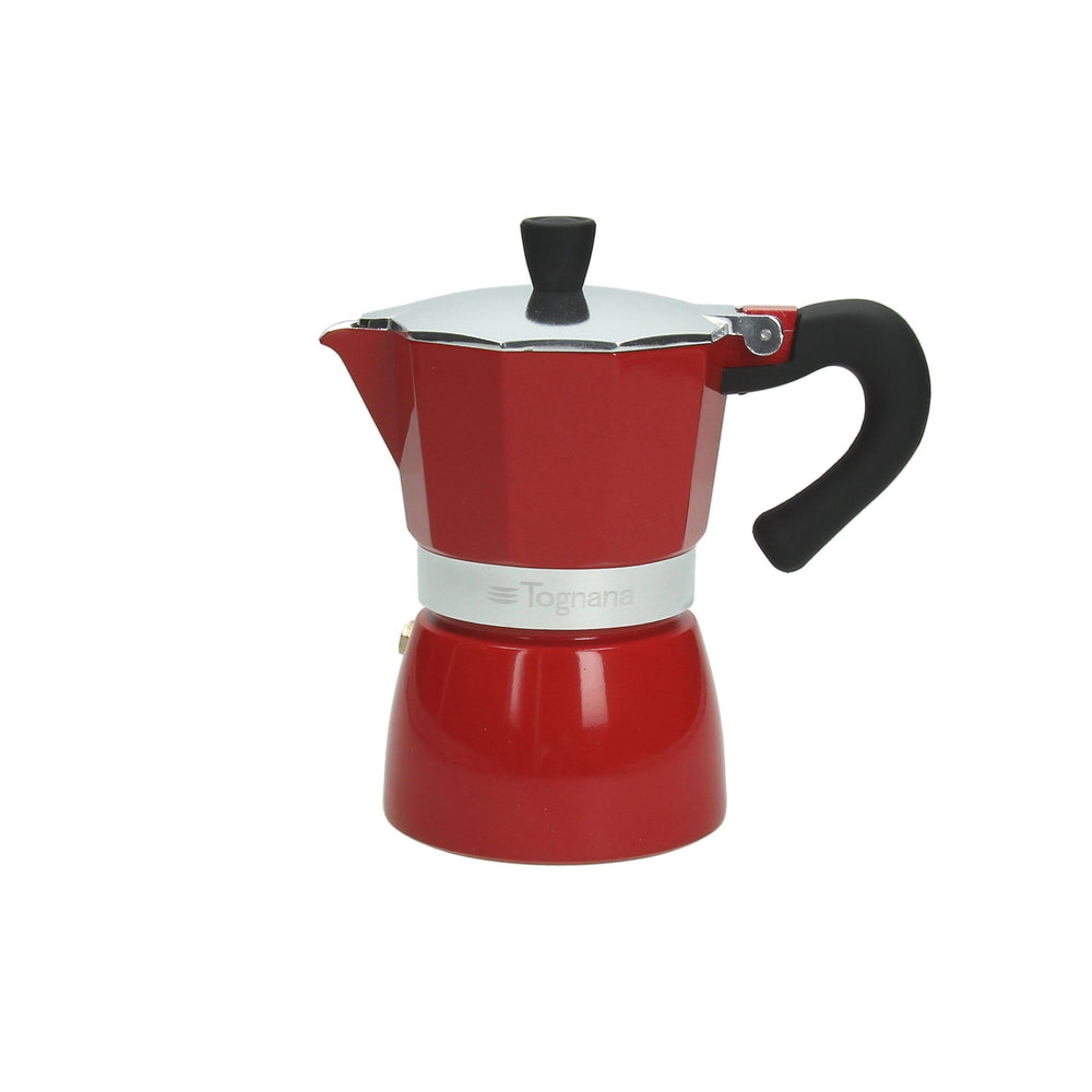MOKA EXPRESS 3 CUP 200ML-SILVER-RED-BLACK MATERIAL- FOOD GRADE ALUMINUM ALLOY