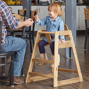 Provide your smallest guests with a place to sit with the Natural Finish Wood High Chair from Winco. It can easily keep your youngest guests safe and tightly secure while they’re in your family-friendly restaurant or diner. The chair is intended to keep children comfortably restrained, which helps to prevent any injuries or accidents. This also helps stop other guests and wait for staff from hurting themselves should they brush against the chair during their stay.