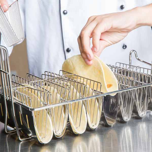 Create ideally formed taco shells with this Nickel Plated 8 Mould Taco Shell Basket from Winco. Excellent for Mexican restaurants and other foodservice facilities, this taco basket is long-lasting and