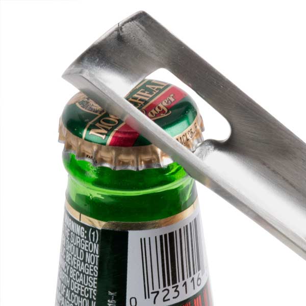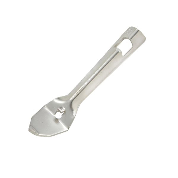 Highlighting two sides for opening different sizes of cans, this Nickel Plated Steel Bottle or Can Punch Opener is a great addition to any bar, restaurant, or catered event. Made from stainless steel, this easy-to-clean bottle opener is rust-resistant and will withstand the rigors of commercial use. Make sure your bartenders and waiters are prepared for the night by giving each of them one of these bottle openers.