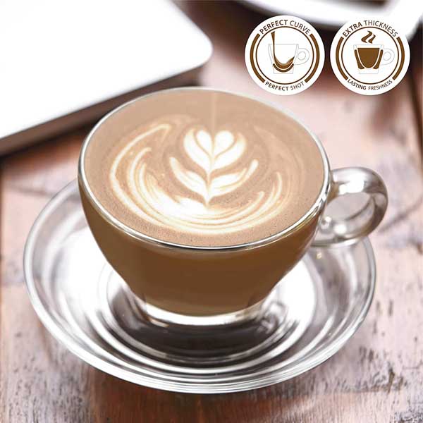 This Glass Latte Cup is perfect for serving up your strongest morning pick-me-ups in a unique style. Thanks to its clear construction that allows patrons to see their warm beverages from all sides. Undeniably stylish and surprisingly durable, this cup is certain to make its mark on your business. The thick base guarantees that the cup can withstand the hustle and bustle of a busy restaurant environment.