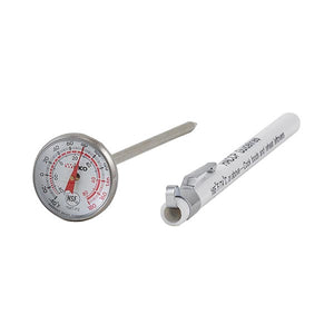 Excellent for checking food temperatures when cooking and baking, the – 5″ Pocket Test Thermometer from Winco is an essential tool for home cooks and professional chefs. This NSF approved thermometer is created with an easy-to-read dial and has a temperature range of -40 degrees to 180 degrees Fahrenheit. Also, with its handy case and clip, this pocket test thermometer allows for easy storage and access.