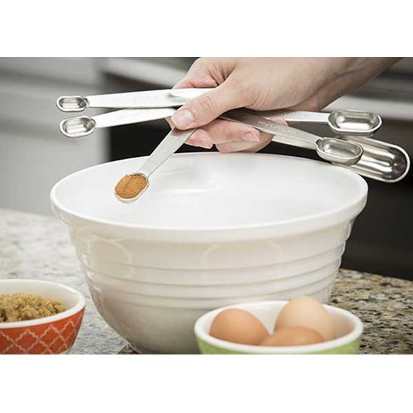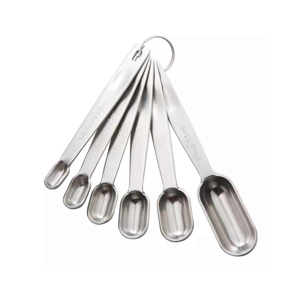 These Premium Stainless Steel Measuring Spoon Set from Tablecraft is the perfect solution for any busy kitchen or catering service. Its stainless steel construction resists corrosion and rusting while being able to withstand high temperatures. These oval measuring spoons are a durable, lasting addition to your kitchen. The set includes 1/8 tsp., 1/4 tsp., 1/2 tsp., and 3/4 tsp., (1) teaspoon, (1) tablespoon assuring you that you’ll have the variety you need to cook or bake virtually anything with the accuracy it requires.