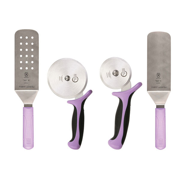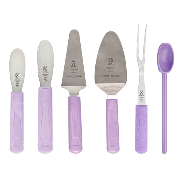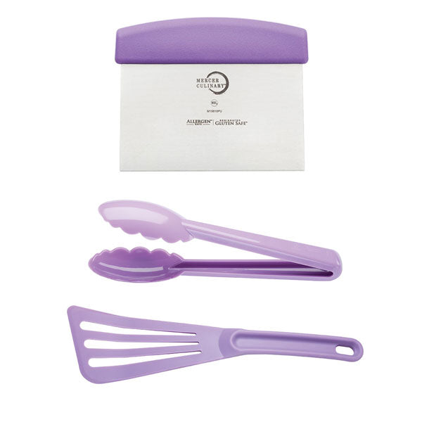 Equip your kitchen for allergen-free with the Mercer Culinary M33065 purple allergen-free storage tote and utensils kit! This kit provides a comprehensive set of tools to implement an allergen-free or gluten-free program in your restaurant. All items are purple in color, which readily identifies them for allergen-free use in the kitchen, preventing cross-contamination and enabling you to honor guests' dietary requirements.
