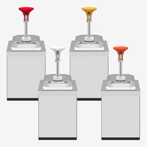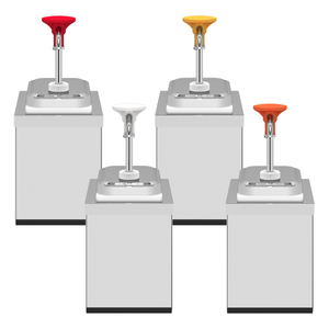 Push button Dispensers are produced from high quality stainless and plastic parts. You can easily distinguish the sauce with different color options. Thanks to the adjustable ring, it provides the opportunity to serve the amount you want. Fountain Jars can easily drop-in to kitchen countertops and will allow you to create your own Sauce dispensing work areas.