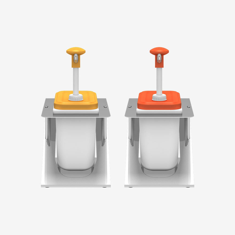 Push button Dispensers are produced from high quality stainless and plastic parts. You can easily distinguish the sauce with different color options. Thanks to the adjustable ring, it provides the opportunity to serve the amount you want. Fountain Jars can easily drop-in to kitchen countertops and will allow you to create your own Sauce dispensing work areas.
