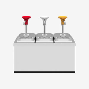 Push button Dispensers are produced from high quality stainless and plastic parts. You can easily distinguish the sauce with different color options. Thanks to the adjustable ring, it provides the opportunity to serve the amount you want. Fountain Jars can easily drop-in to kitchen countertops and will allow you to create your own Sauce dispensing work areas.