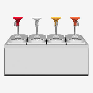 Push button Dispensers are produced from high quality stainless and plastic parts. You can easily distinguish the sauce with different color options. Thanks to the adjustable ring, it provides the opportunity to serve the amount you want. Fountain Jars can easily drop-in to kitchen countertops and will allow you to create your own Sauce dispensing work areas.
